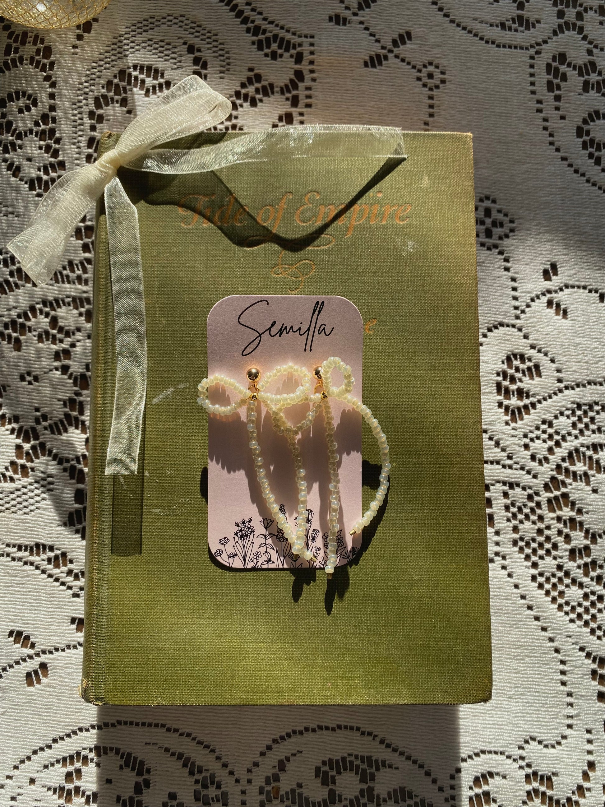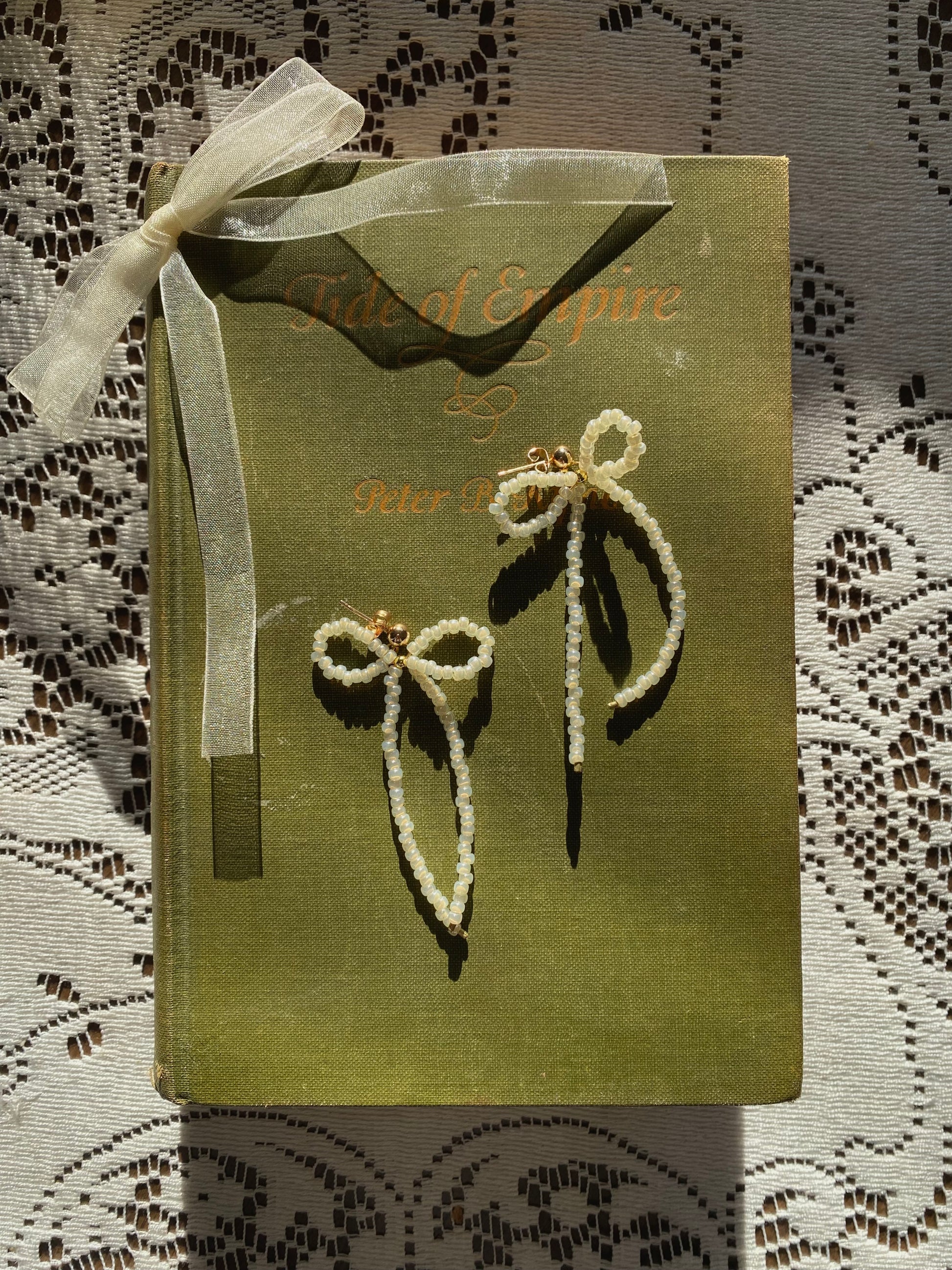 You and I both know that you are the true gift this year! Put a ribbon on it with our Clara dangles, which feature pearlized white seed beads in the shape of a bow. Connected to a gold-plated ball post.