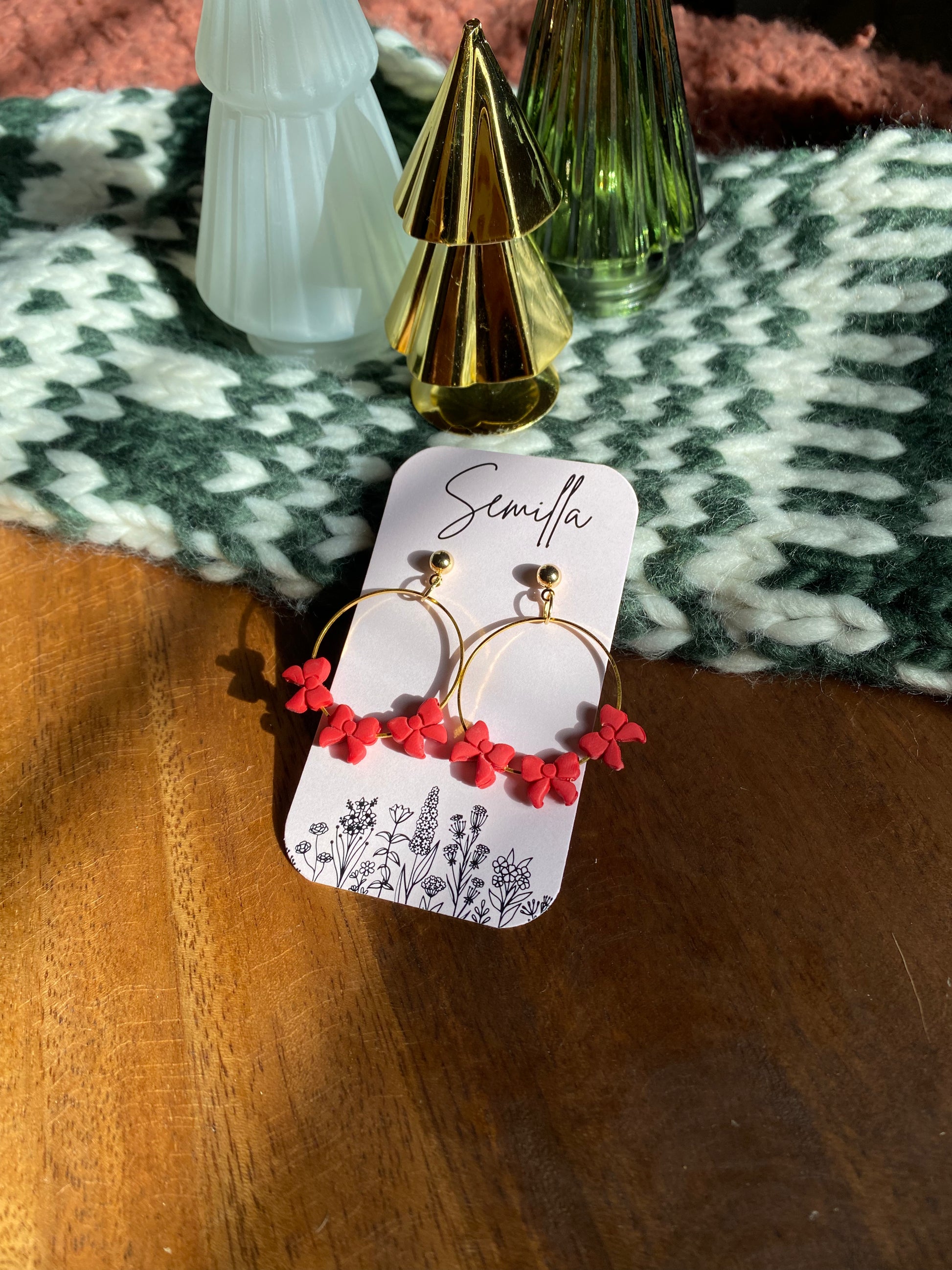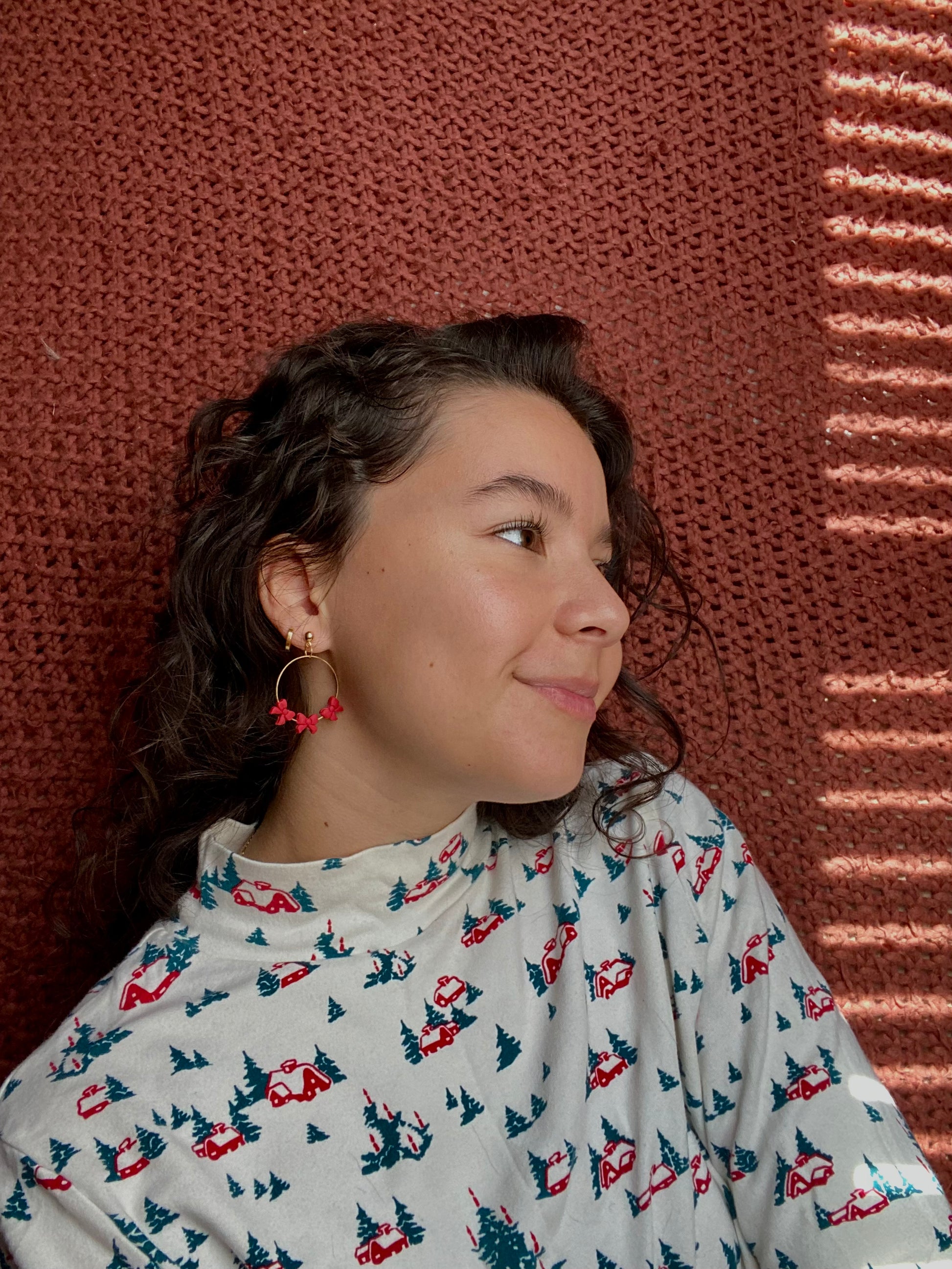 You heard it here first folks: 2023 is the year of the bow!! These dangles feature three mini red bows hung on a golden brass hoop. Dangles are hung on gold plated ball posts, which are hypoallergenic stainless steel. That means they're nickel free and safe for all my fellow sensitive ear queens out there!